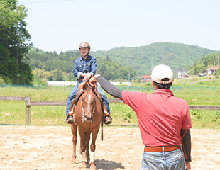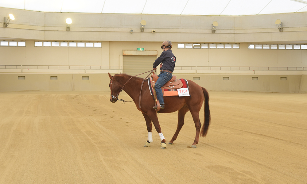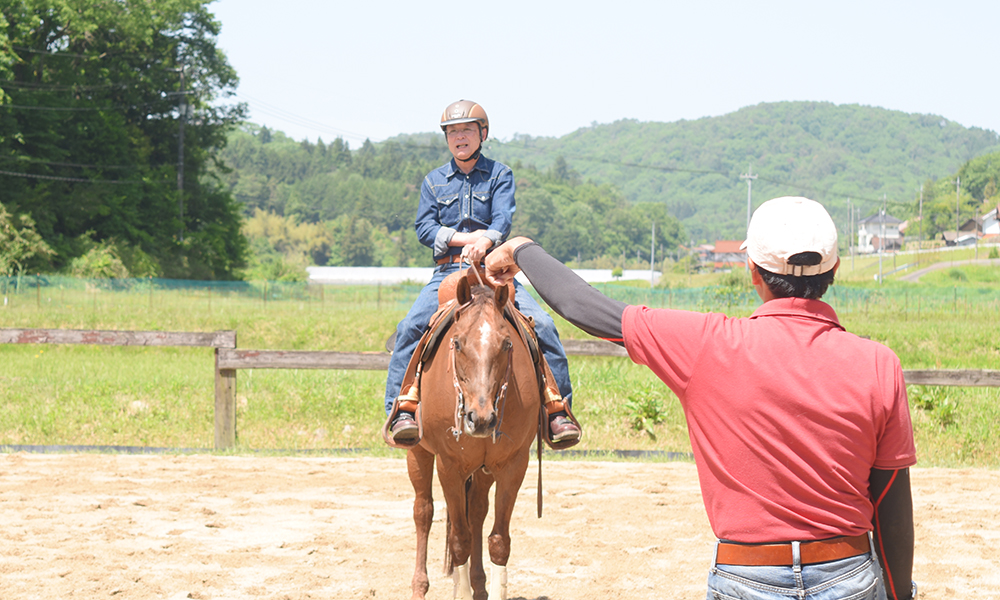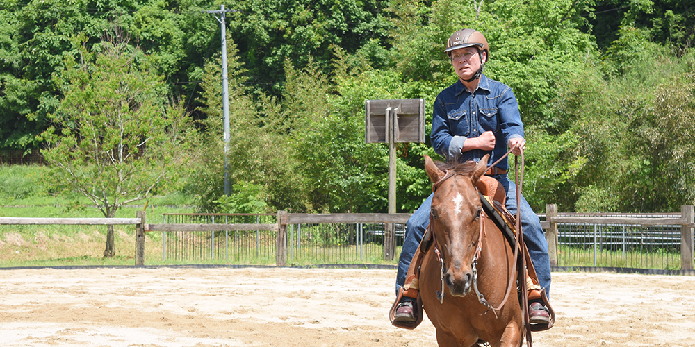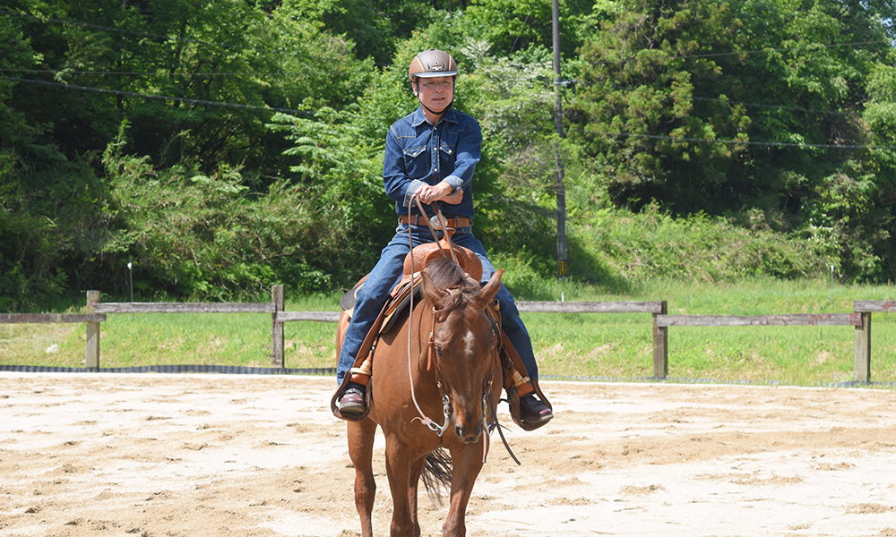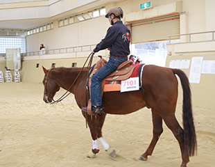 競技は広いアリーナの中で行われ、サークル、スライディングストップ、バックアップ、スピンなどで構成される規定パターンの演技で、馬の運動能力を競います。フィジカルな部分は馬が担い、メンタルな部分を人が担うため、競技者の性別や年齢による体力差は関係ありません。シニア世代が若い世代と対等に競うことができ、むしろ豊かな人生経験を生かせる競技といえます。
