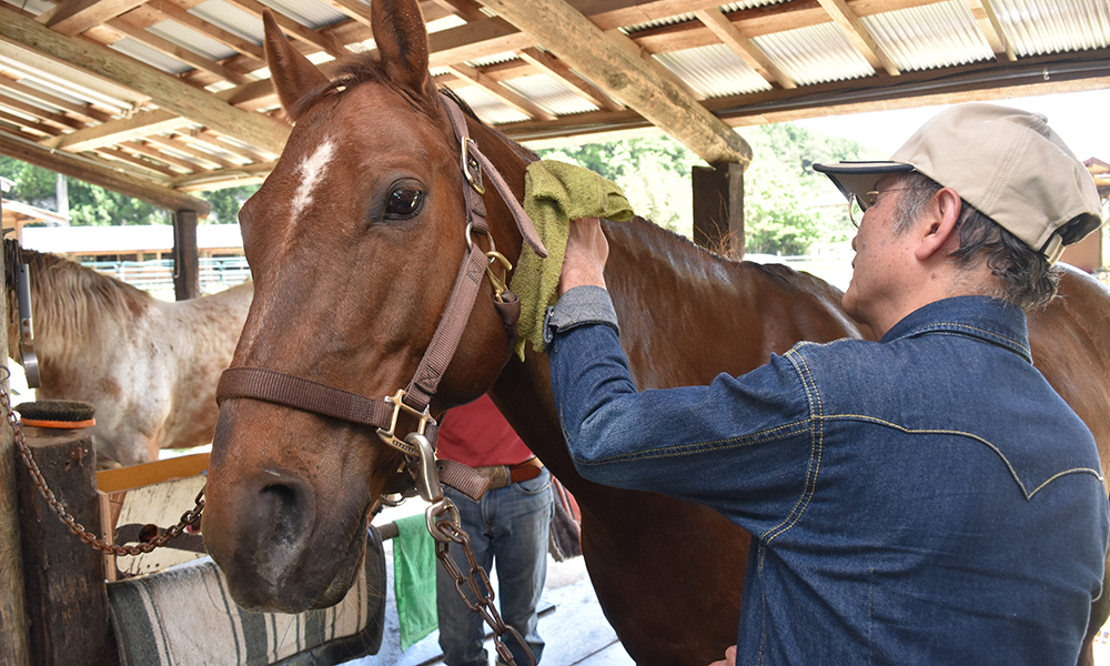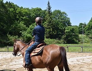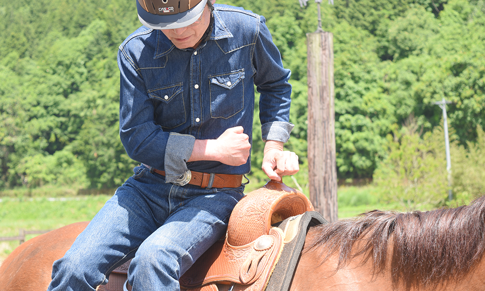 レイニングの「レイン」とは手綱のことですが、実際にはあまり手綱は使わず、騎座や脚、声などによる繊細な調教を行っています。そのため、競技中は一見、馬が自らの意思で動いているように見えるのも、レイニングの特徴の一つです。