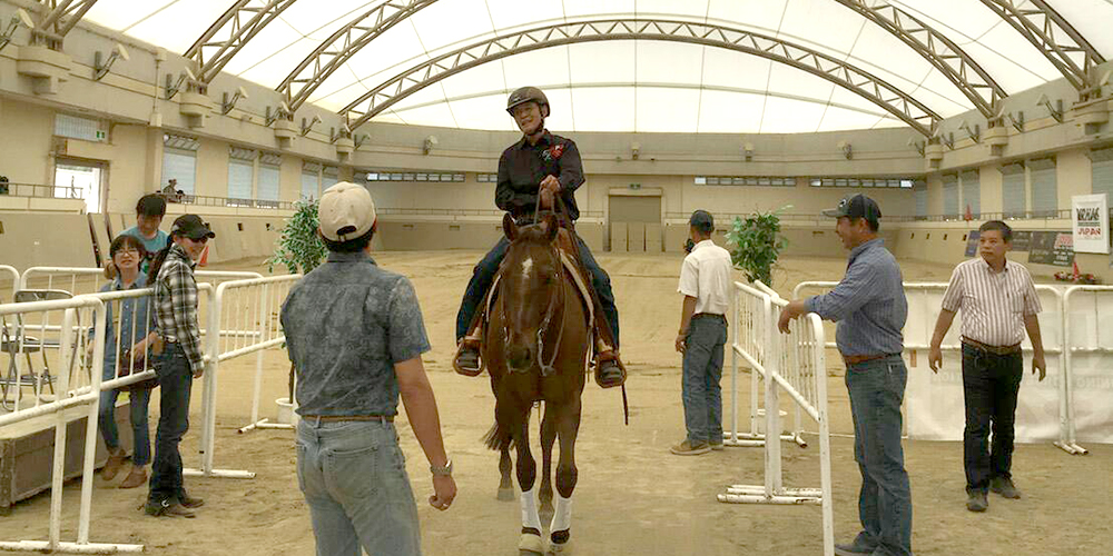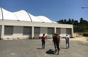 福岡県馬術競技場も4回目になりました。厩舎、屋内馬術練習場で Smartyは馬術競技の顔になります。